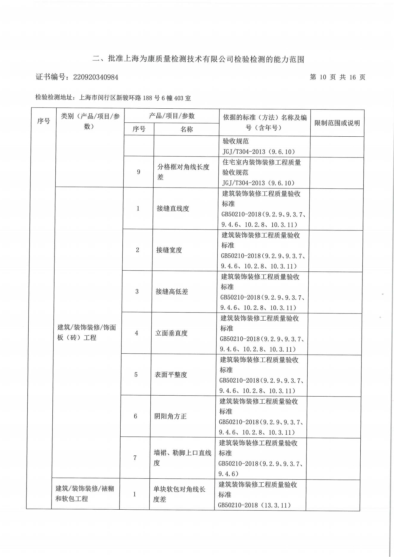 分戶驗(yàn)收要求 分戶驗(yàn)收:即交房前依照相關(guān)標(biāo)準(zhǔn)對(duì)區(qū)域內(nèi)住宅逐套進(jìn)行驗(yàn)收。自2009年10月1日起所有上海市住宅工程強(qiáng)制實(shí)施分戶驗(yàn)收。《上海市工程質(zhì)量分戶驗(yàn)收管理規(guī)定》住宅工程竣工驗(yàn)收前必須依照《住宅工程套內(nèi)質(zhì)量驗(yàn)收規(guī)范》DG/TJ08-2062-2009和現(xiàn)行工程質(zhì)量標(biāo)準(zhǔn)、規(guī)范,對(duì)每戶套內(nèi)的觀感質(zhì)量、使用功能及使用安全進(jìn)行驗(yàn)收。凡未實(shí)施分戶驗(yàn)收的,該工程項(xiàng)目將不得交付使用;服務(wù)范圍 一、裝修房全過程跟蹤檢查:從毛坯到裝修結(jié)束全過程跟蹤檢驗(yàn);對(duì)隱蔽工程施工進(jìn)行檢測(cè);對(duì)裝飾 材料進(jìn)行控制;每個(gè)施工節(jié)點(diǎn)作好原始記錄并提出整改意見;待整改結(jié)束進(jìn)行復(fù)查,直至符合 要求;最終每戶出具一份檢測(cè)報(bào)告。 二、裝修房竣工驗(yàn)收:主要對(duì)安全、使用功能及表面觀感質(zhì)量進(jìn)行檢測(cè);每個(gè)施工節(jié)點(diǎn)作好原始記錄并提出整改意見;待整改結(jié)束進(jìn)行復(fù)查,直至符合要求;最終每戶出具一份檢測(cè)報(bào)告。 三、毛坯竣工驗(yàn)收:主要對(duì)安全、使用功能及表面觀感質(zhì)量進(jìn)行檢測(cè);每個(gè)施工節(jié)點(diǎn)作好原始記錄并提出整改意見;待整改結(jié)束進(jìn)行復(fù)查,直至符合要求;最終每戶出具一份檢測(cè)報(bào)告。 四、個(gè)人交房驗(yàn)房檢測(cè)。 建設(shè)工程分戶驗(yàn)收檢測(cè)參考標(biāo)準(zhǔn) DG/TJ08-2062-2017 《住宅工程套內(nèi)質(zhì)量驗(yàn)收規(guī)范 》 DB/T 31/30-2003《住宅裝飾裝修驗(yàn)收標(biāo)準(zhǔn)》 GB50209-2002《建筑地面工程施工質(zhì)量驗(yàn)收規(guī)范》 GB50210-2001《建筑裝飾裝修工程質(zhì)量驗(yàn)收規(guī)范》 GB20242-2002《建筑給排水及采暖工程施工質(zhì)量驗(yàn)收規(guī)范》 GB50300-2001《建筑工程施工質(zhì)量驗(yàn)收統(tǒng)一標(biāo)準(zhǔn)》 GB50303-2002《建筑電氣工程施工質(zhì)量驗(yàn)收規(guī)范》 套內(nèi)質(zhì)量檢測(cè)(一房一驗(yàn))內(nèi)容 檢測(cè)內(nèi)容 建筑尺寸 室內(nèi)地面:水泥砂漿地面、木、竹地板,板塊地面 室內(nèi)頂棚:頂棚抹灰、吊頂工程 室內(nèi)墻面:墻面抹灰、飾面板(磚)墻面、涂飾工程、裱糊工程、軟包工程 建筑門窗 樓梯與護(hù)欄 細(xì)部工程:櫥、柜,窗簾盒、窗臺(tái)板、門窗套、可折裝式隔斷、淋浴房 給排水與燃?xì)猓菏覂?nèi)給水、室內(nèi)排水、衛(wèi)生器具、燃?xì)夤艿? 通風(fēng)與空調(diào):送排風(fēng)和防排煙、空調(diào)工程、 室內(nèi)電氣:燈具安裝、開關(guān)、插座,分戶配電箱、室內(nèi)配線、等電位聯(lián)結(jié) 弱電工程:有線電視安裝工程、電話、信息網(wǎng)絡(luò)安裝工程,訪客對(duì)講安裝工程、安防報(bào)警系統(tǒng) 太陽能熱水系統(tǒng) 室內(nèi)環(huán)境評(píng)價(jià)